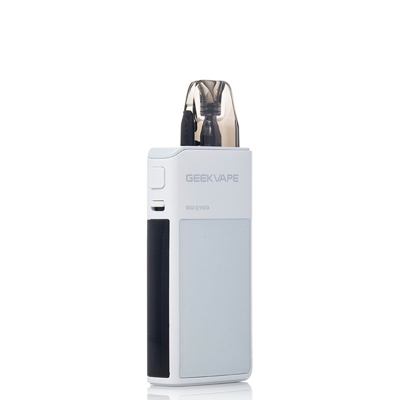 The Digi Q Vista is brand new to May 2025. It comes with a 1600mAh Battery, has a Max Wattage of 35W, holds 3mL of Juice, & comes in 8 Colors. There are 3 Power Modes; Eco, Smart, Dynamic. It’s Fire Button Activated. Has Adjustable Airflow. You can MTL or RDTL Vape. There is a beautiful 3D Curved Screen. The 8 Colors are; Black, Champagne Gold, Gunmetal, Lavender Purple, Light Jade, Ocean Blue, Silver, & White.