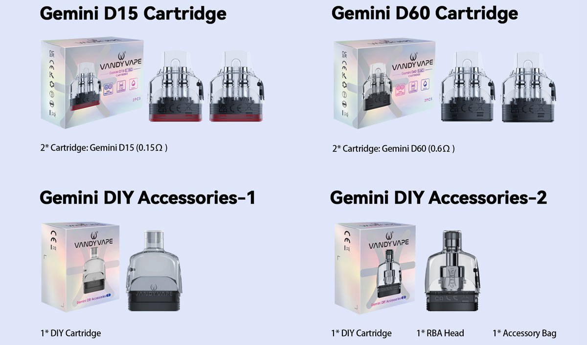 We absolutely love these 0.15ohm Gemini pods, they are better than the Caliburn GPP pods, no leaks ever. The Gemini devices themselves have only a ‘decent’ battery life for heavy use, but thankfully they charge quickly from 40% to 80%, about 15-minutes. We like this system so much we invested in 3 total Gemini devices, a bunch of 0.15 Ohm pods, and a bunch of DIY “empty pods” to put our Boro Bridges in! I can’t believe how well these Boros work inside a pod!